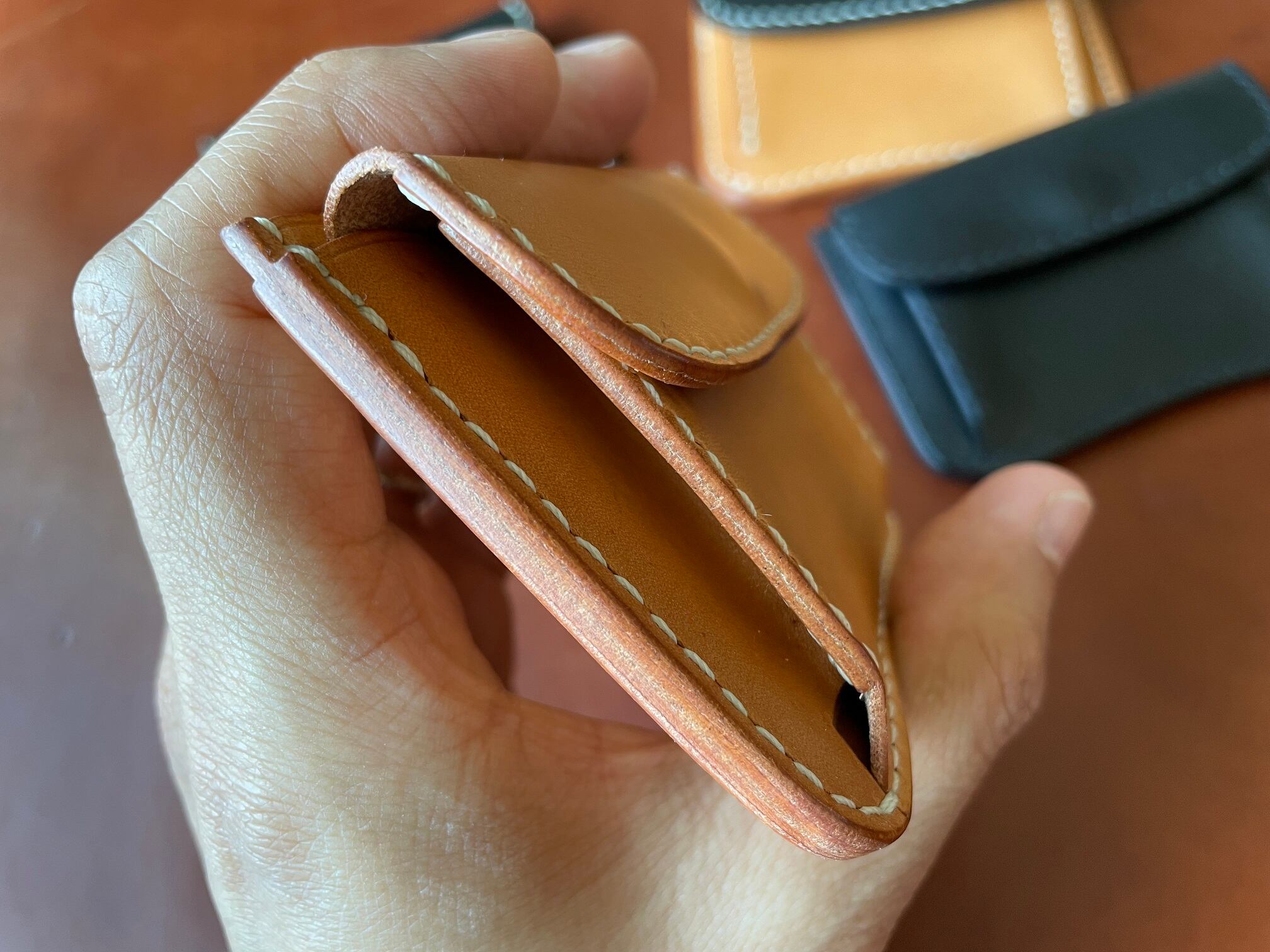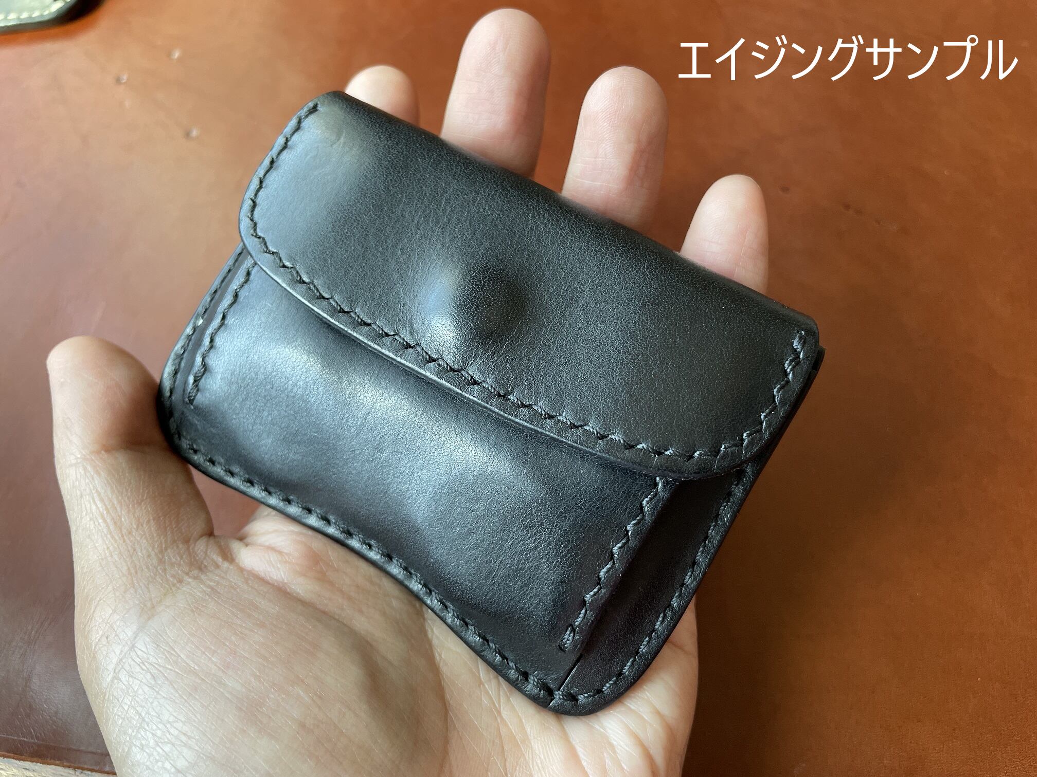 全ての行程を手作業により行っており、丁寧に裁断から総手縫いし、仕上げております。シンプルですが、ずっしりとした革の魅力を味わえる品です。