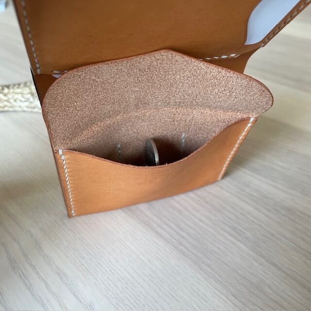 全ての行程を手作業により行っており、丁寧に裁断から総手縫いし、仕上げております。シンプルですが、ずっしりとした革の魅力を味わえる品です。