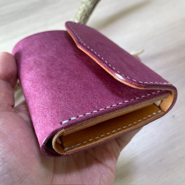 全ての行程を手作業により行っており、丁寧に裁断から総手縫いし、仕上げております。シンプルですが、ずっしりとした革の魅力を味わえる品です。